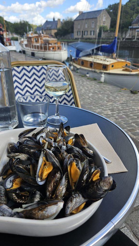 Hungrig setzte ich mich nach meiner Rückkehr aus Lehon in ein Restaurant am Hafen und bestellte Moules. Was ehrlich gesagt nicht die beste Entscheidung war – das Essen war ok, aber war insgesamt etwas lieblos und Massenabfertigung. Selber Schuld wenn man ins erstbeste Restaurant geht;) Danach bin ich die Gassen wieder hochgelaufen und noch zur alten Stadtmauer gegangen, habe einen Abstecher zum Schloss gemacht (nur vorne dran, bin nicht rein gegangen) und habe bei den verschiedenen Infotafeln etwas mehr über die Geschichte von Dinan erfahren.